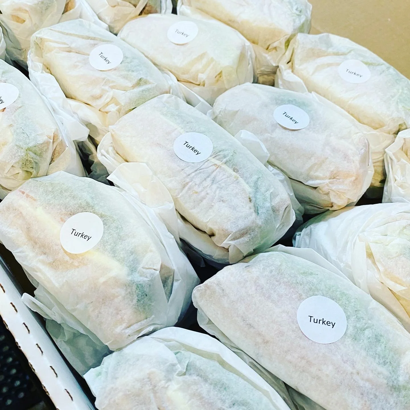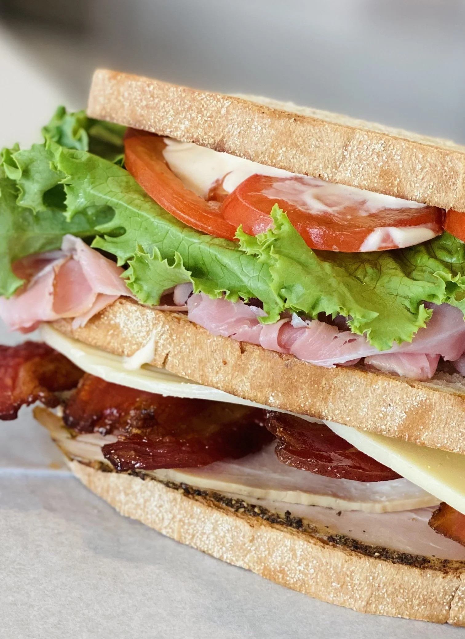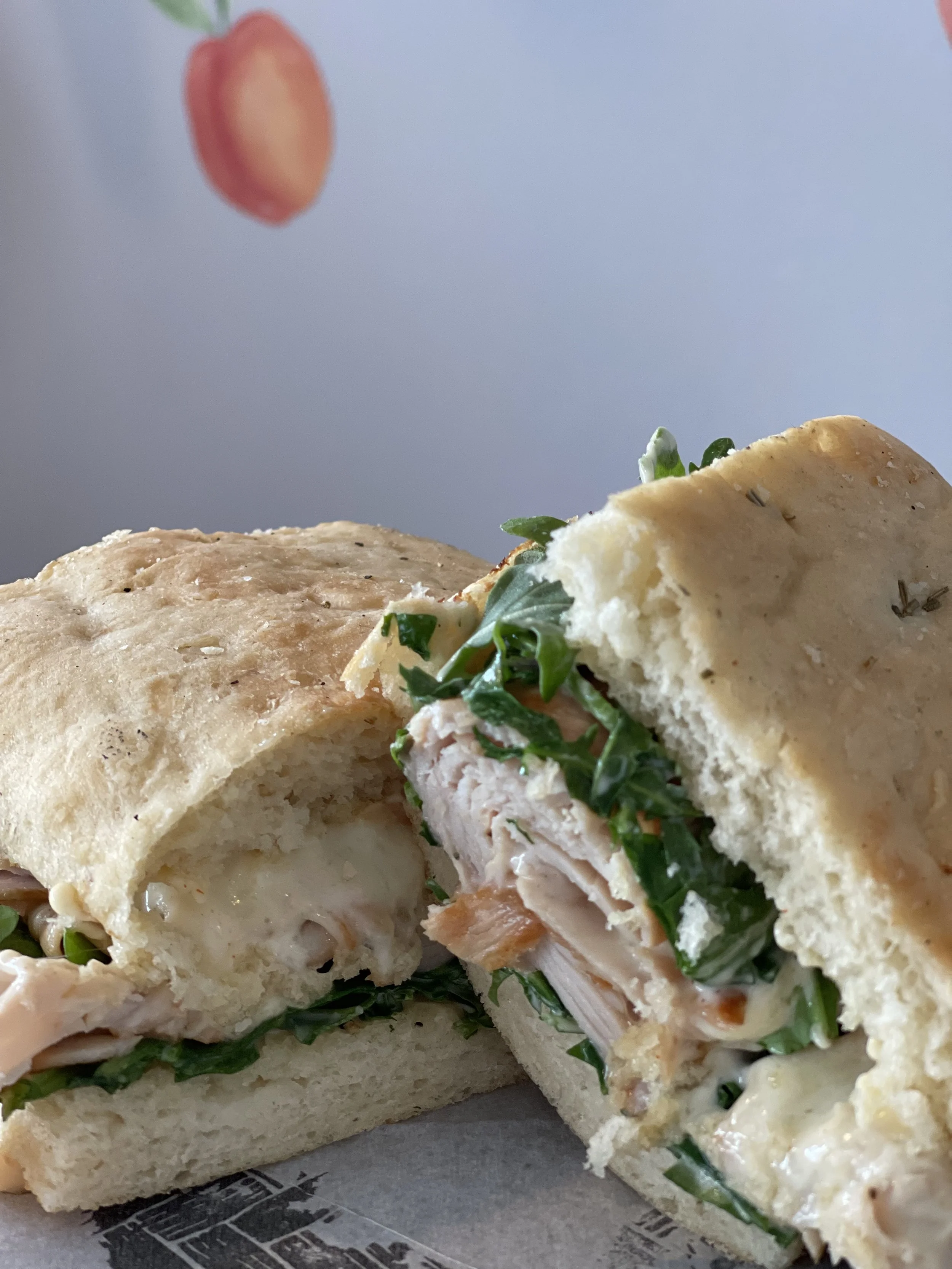 The Turkey - house roasted turkey with provolone, arugula and Alabama white sauce on toasted house made focaccia