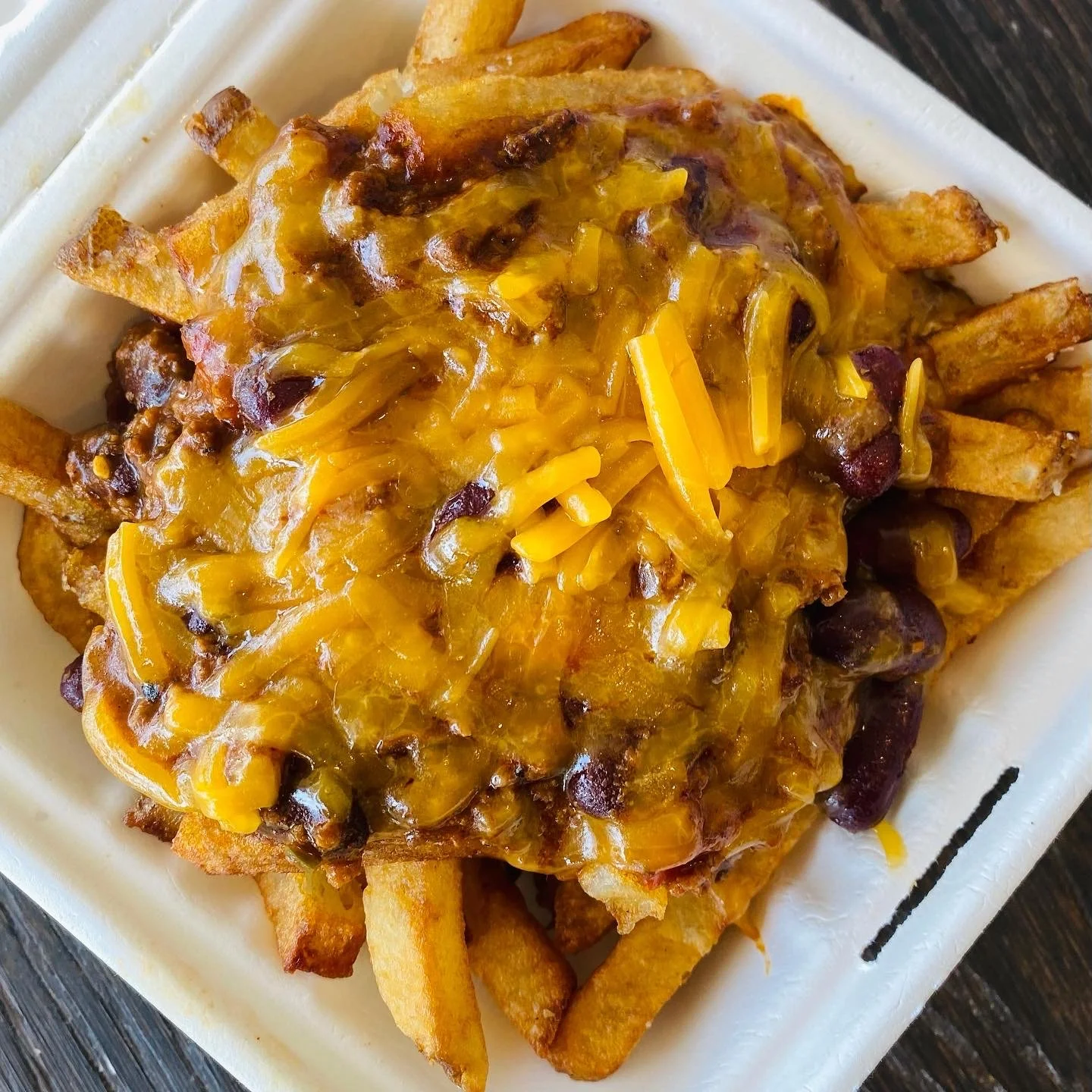 The Burger - house ground burger with cheddar, lettuce and tomato on a toasted brioche roll