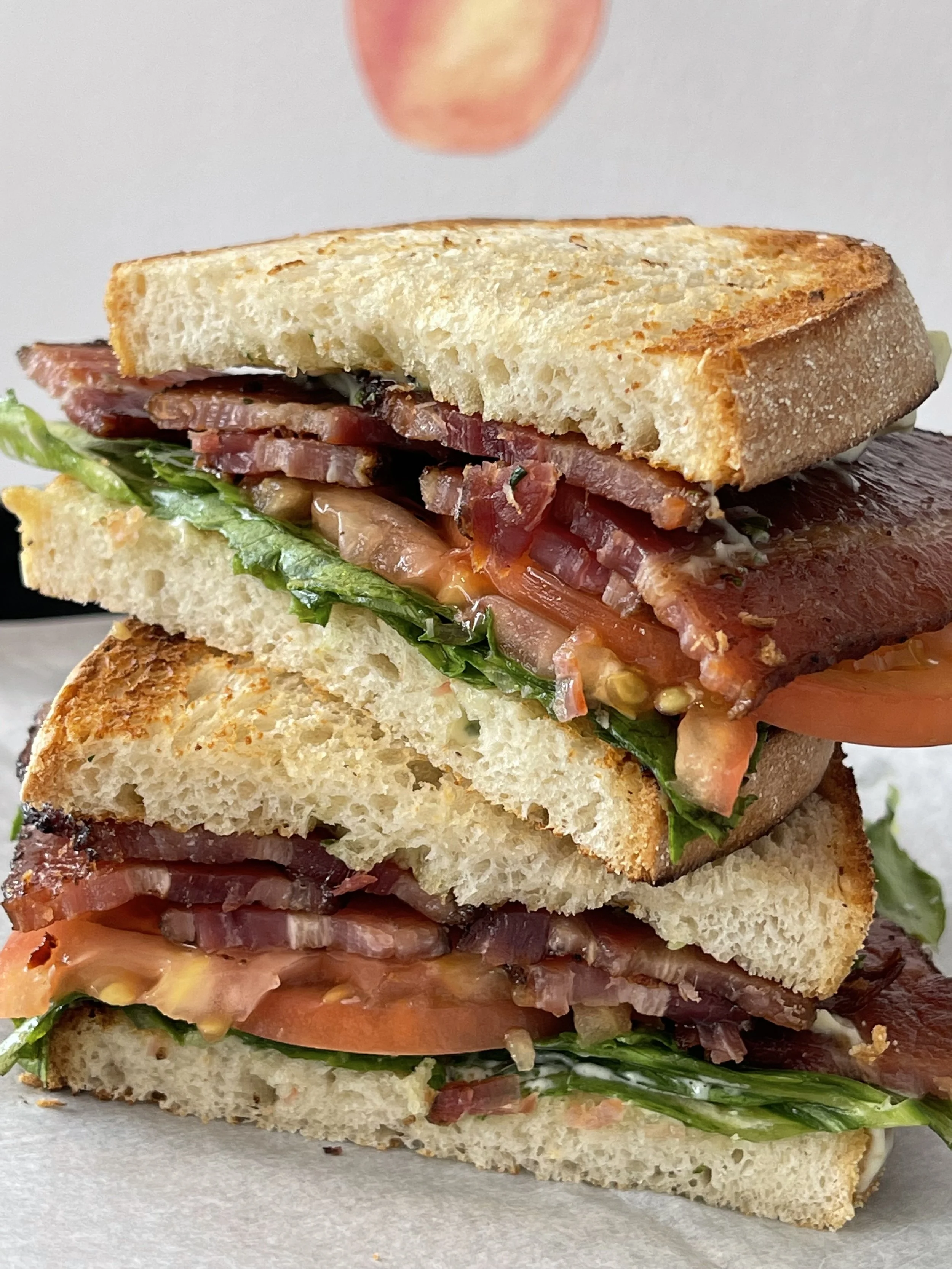 The Bacon - house made, thick cut bacon with lettuce, tomato and herb mayo on toasted sourdough